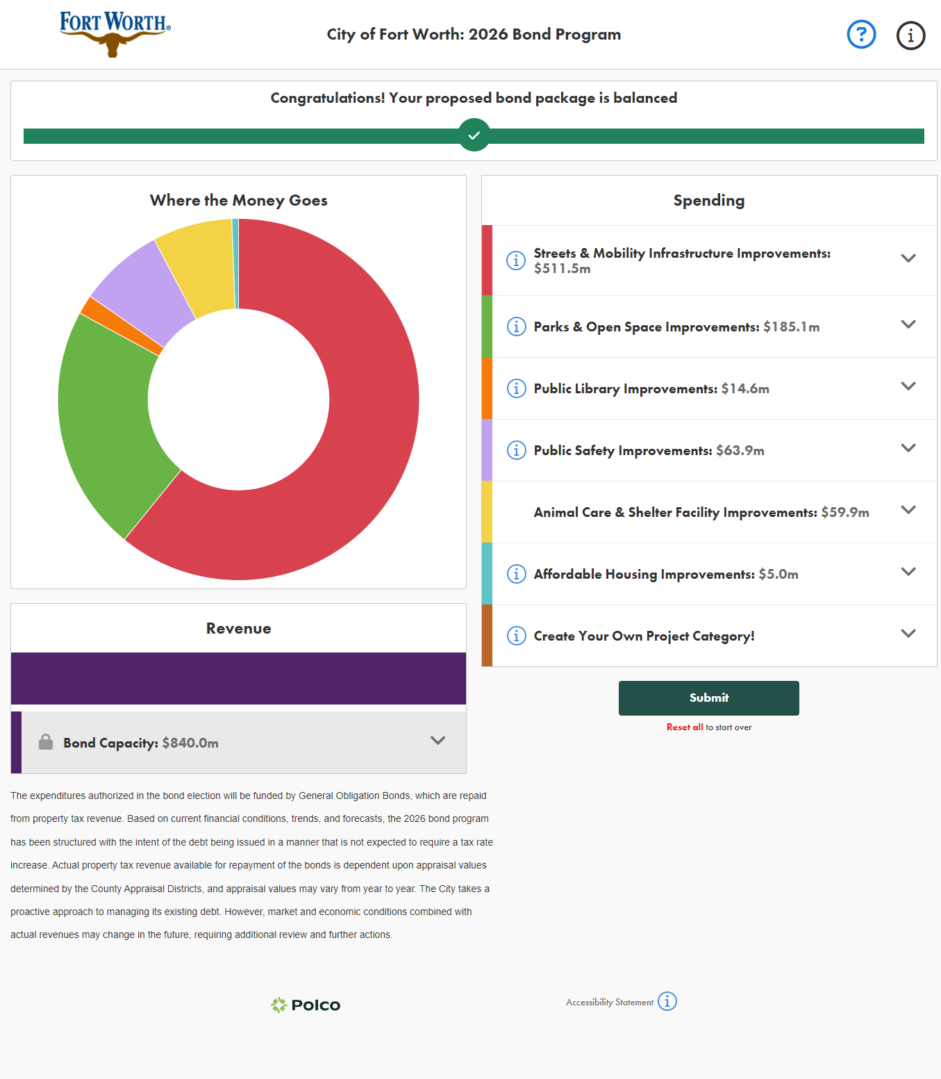 Use the tools below to provide feedback on the proposed propositions, projects, and funding amounts!